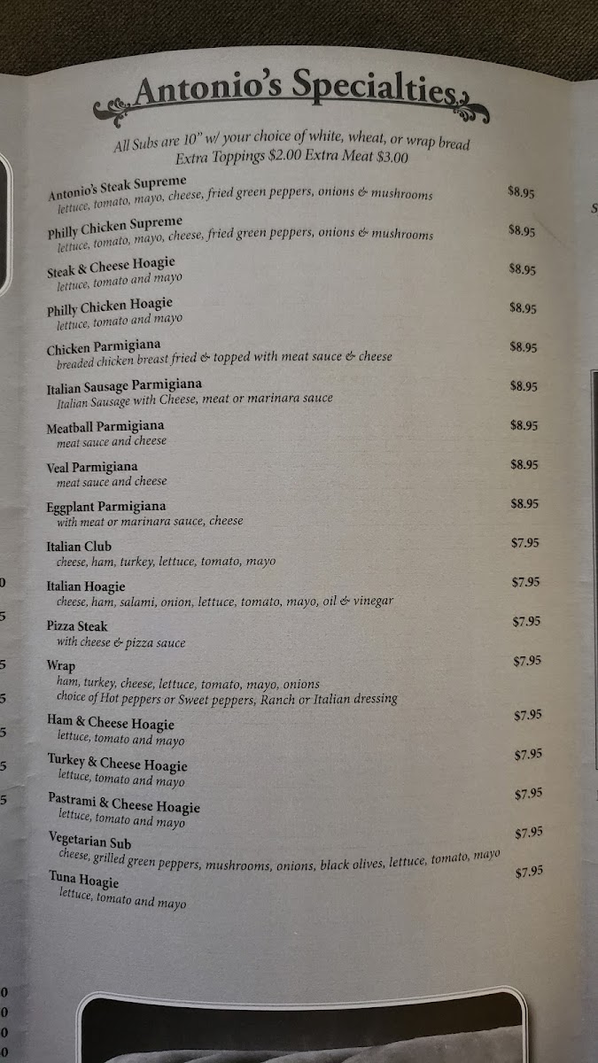 For those craving classic Italian subs, try the Italian Club or the Philly Chicken Hoagie, both highly praised by satisfied customers. Don’t overlook their past pasta dinners, such as the Chicken Cacciatore or Veal Parmigiana, each crafted to perfection. With numerous positive reviews highlighting the top-notch quality of the food, Antonio’s is not just a stop, but an experience worth savoring.